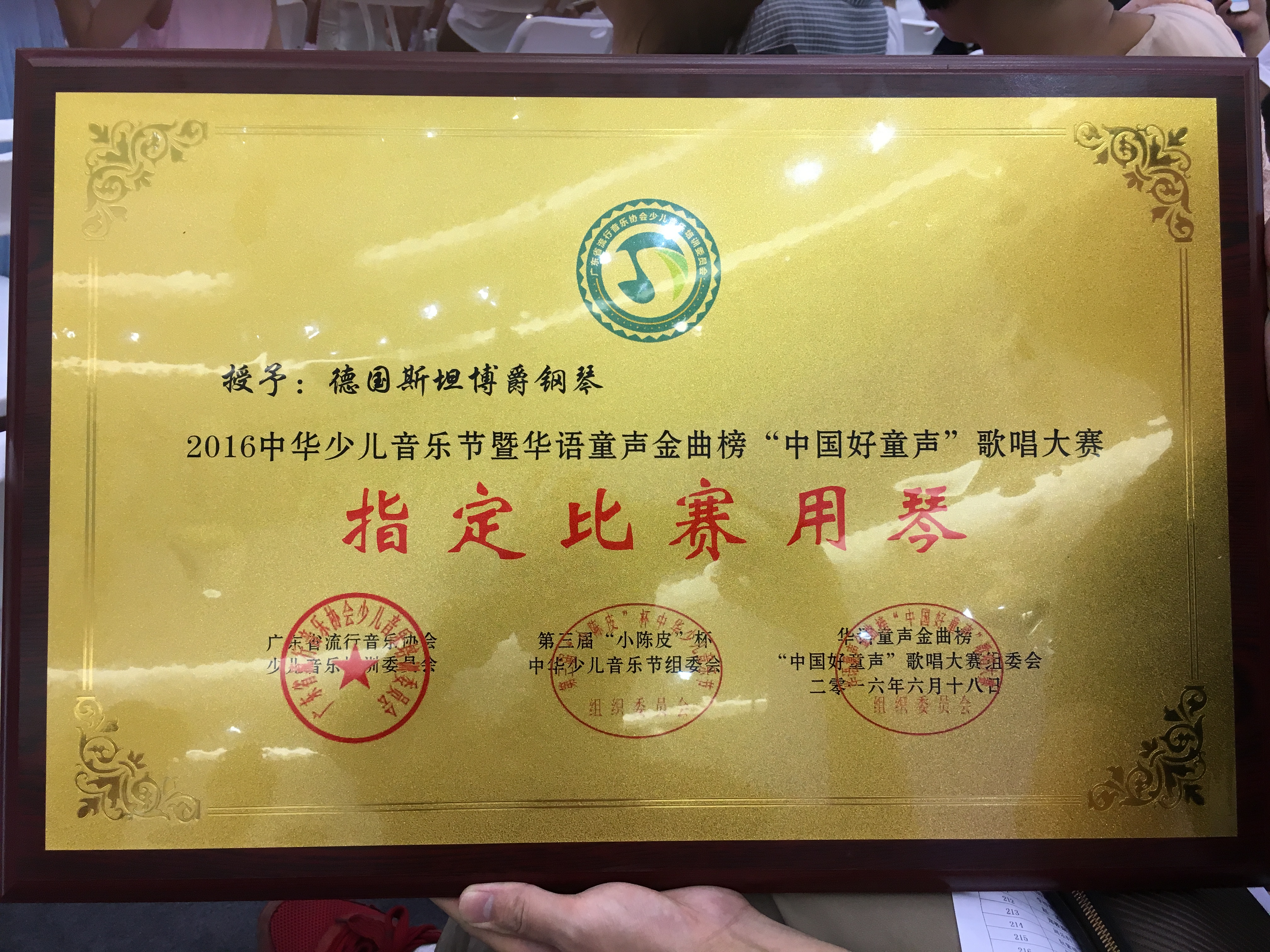 德國斯坦博爵鋼琴作為2016中華少兒音樂節(jié)暨華語童聲金曲榜“中國好童聲”歌唱比賽指定比賽用琴參加了此次的活動(dòng)?。ū疚挠伤固共┚翡撉?a href="">鋼琴廠家提供)